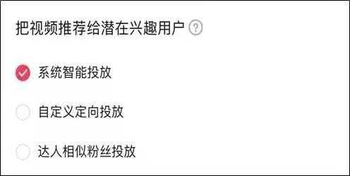模式1:系統智能投放,系統會智能選擇可能對該視頻感興趣的用戶或潛在粉絲,對其進行視頻展現。