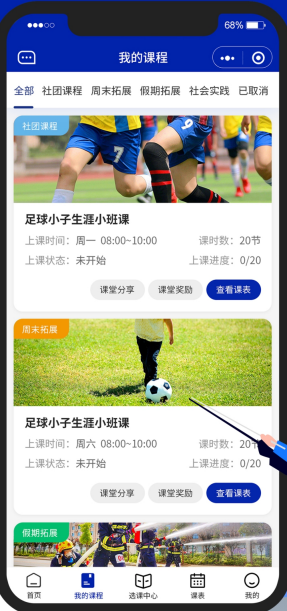 校園素質拓展小程序平臺系統開發介紹:校園素質拓展課程管理平臺集素質課程選課、素質評價、排課管理于一體,能有效幫助教育行政主管部門、學校管理學生素質課堂,并通過素質評價數據分析,了解學校學生綜合素質發展情況,為學校綜合素質評價提供有力的信息化技術支撐。校園素質拓展課程管理平臺服務于小學、初中素質教學管理和選課,學生在線選課、課表查看、請假、簽到、互動、評價;教師課程管理、上課分享、互動、評價;學校實現...